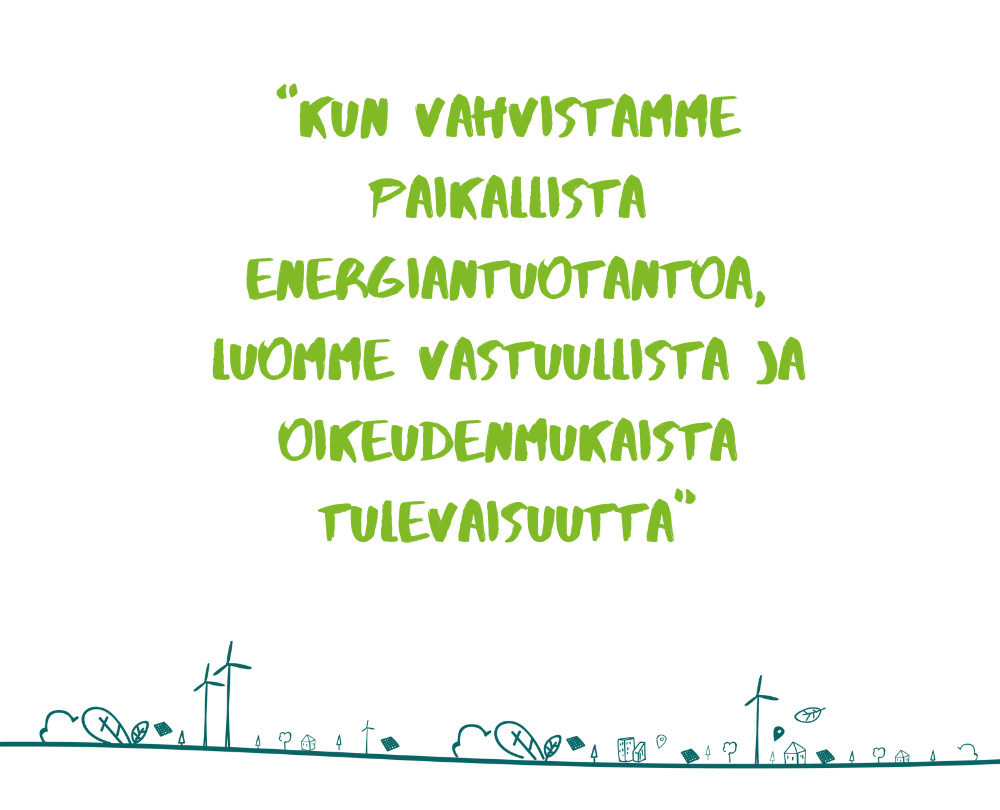 Tuottaa uusiutuvaa energiaa yhteistyössä paikallisten sidosryhmien kanssa ja jakaa luotu taloudellinen arvo heidän kanssaan.